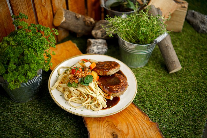 2 saftige Fleischküchle, Bratensoße, Spätzle & Karottengemüse
