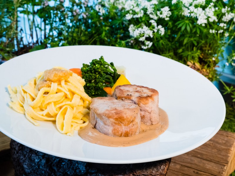 Schweinelendchen, Rahmsoße, Spätzle & Marktgemüse