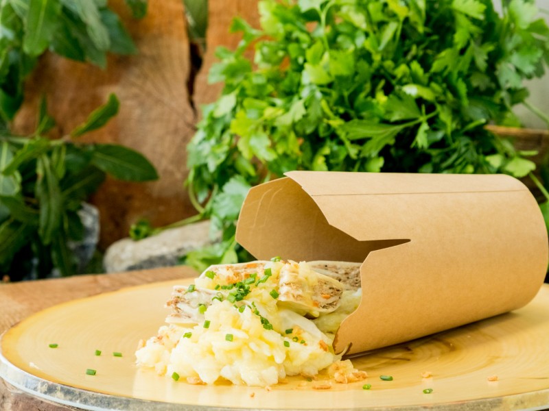 Unsere Waldpilzspinatmaultaschen, Zwiebelschmelze, Omas Kartoffelsalat & Schnittlauch